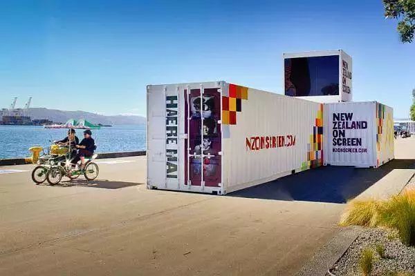 被称为New Zeeland on Screen的项目将电视和音乐视频放在货物集装箱上。Kiwi Films机构想要一种特殊的东西吸引使用高科技设施和小器具的游客,所以他们使用了一些集装箱,把它们改造成互动式的媒体室。